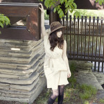 In these photos I’m wearing an amazing a-symmetrical dress from the AKIRA black label, boots from ASOS, tights from ROMWE, and a hat from hats.com.