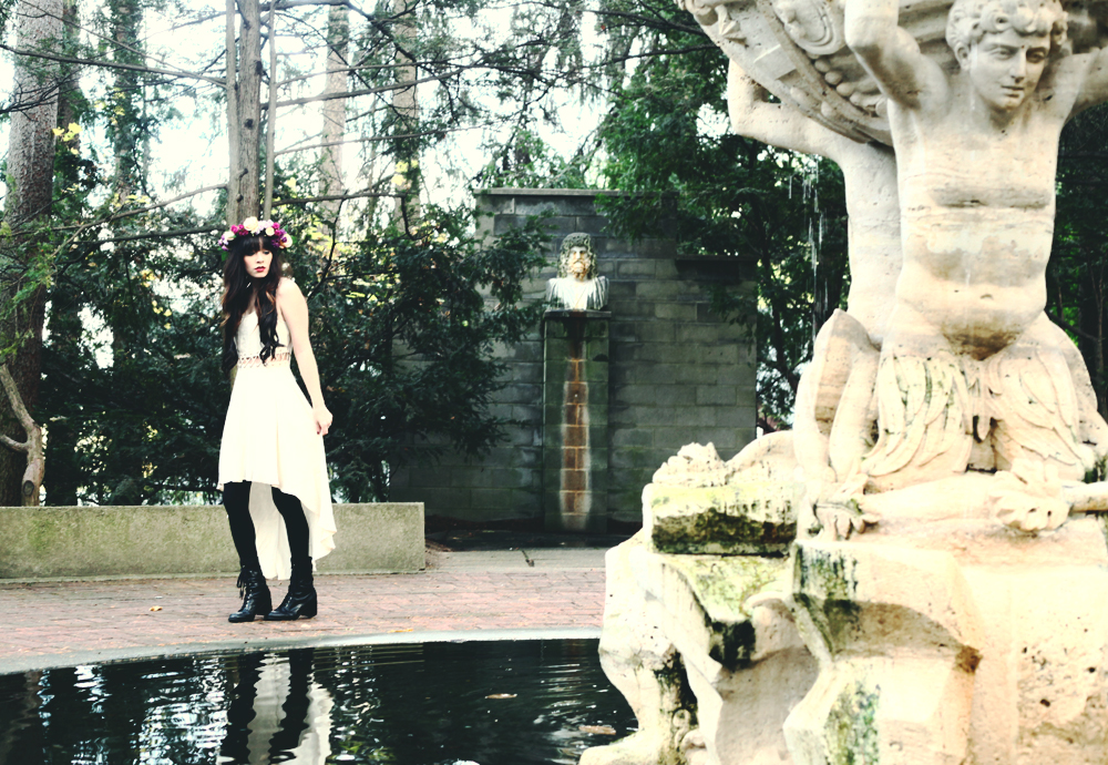 Flower crown c/o A Flower Named Girl, old dress, thrifted boots.